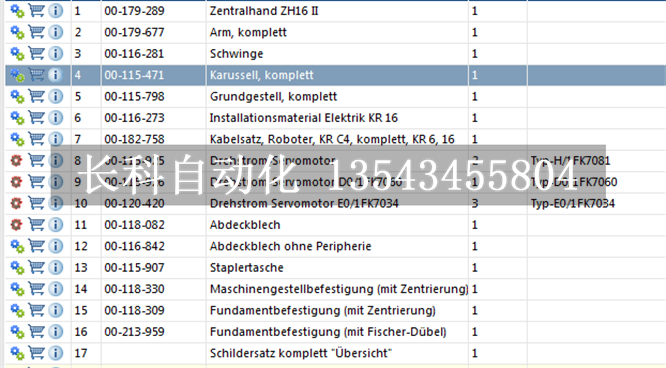 以上為KUKA KR6-2 機(jī)器人配件訂貨號,所有型號均可以訂購。
