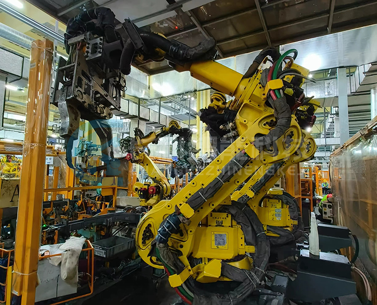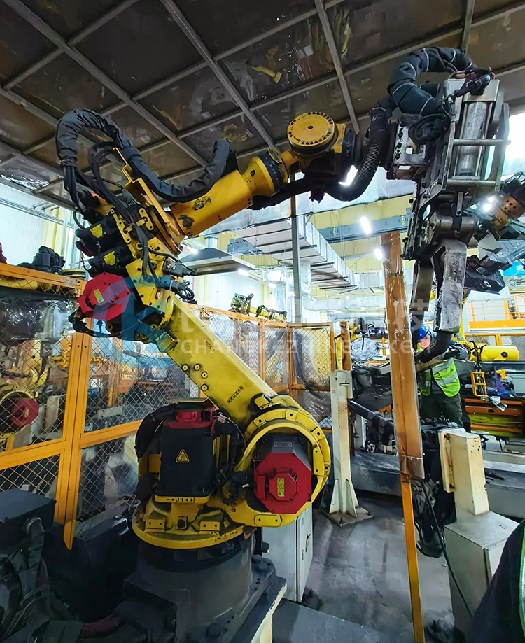 The maintenance this time is for the Fanuc high-speed spot welding robot R-1000iA/100F for the right rear longitudinal beam assembly and the rear floor sub assembly.